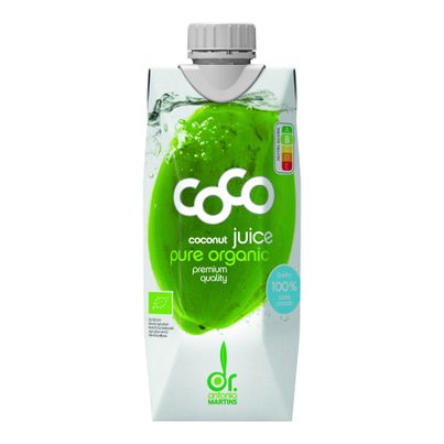 Coco Drink pure von Dr. Martins bietet dir frischen, klaren Kokossaft aus jungen Kokosnüssen. Mit einem milden, leicht süßen Geschmack und einem Hauch von Kokos ist dieser Saft die ideale Erfrischung. Ohne Fett und mit wenigen Kalorien passt er perfekt in eine gesunde Ernährung. Vegan und ohne Gentechnik – einfach purer Genuss!
