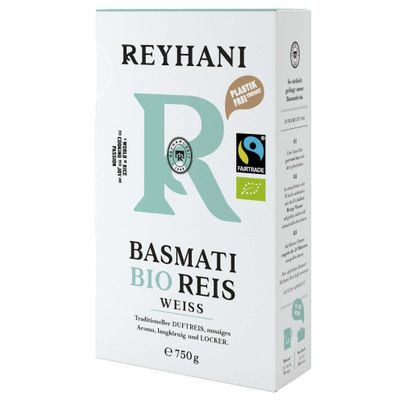 • Bio Fairtrade Basmati Reis weiß 750g - Passt gut zu saftigen Gerichten - Traditioneller Duftreis - nussiges Aroma - langkörnig und locker von Reyhani
