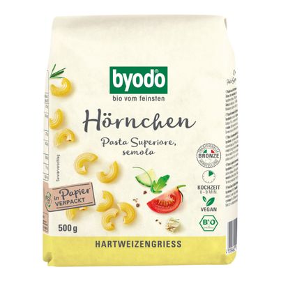 Die Hörnchen Semola von Byodo bringen Abwechslung auf deinen Teller. Diese kleinen, gebogenen Nudeln mit ihrer typischen Riffelung und dem geraden Schnitt sind nicht nur ein Genuss für den Gaumen, sondern auch eine hervorragende Wahl für deine gesunde Ernährung. Die Riffelung sorgt dafür, dass die Sauce optimal haftet, sodass jeder Bissen voller Geschmack ist.