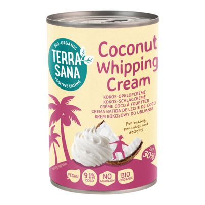 Terrasana Kokos Schlagcreme ist die ideale vegane Alternative zu herkömmlicher Schlagsahne. Mit 91% Kokosnuss und 30% Fettanteil begeistert sie durch ihre cremige Konsistenz. Ob als Topping für dein veganes Gebäck oder in Desserts, sie lässt sich problemlos steif aufschlagen. Frei von Gentechnik und ganz ohne tierische Produkte – perfekt für eine bewusste Ernährung.