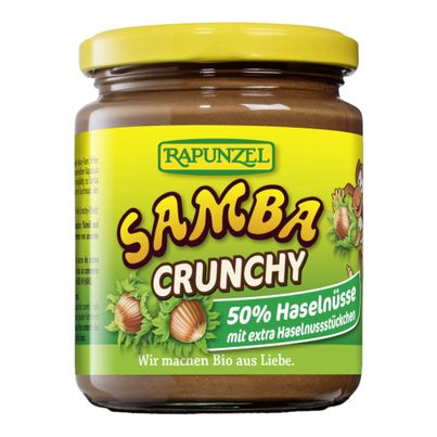 Bio Samba Crunchy von Rapunzel Naturkost begeistert mit 50% gerösteten Haselnüssen, die in Kombination mit edlem Kakao und Allgäuer Vollmilch ein unvergleichliches Geschmackserlebnis bieten. Der Hauch echter Bourbon Vanille verleiht dem Aufstrich eine besondere Note. Ideal für Nuss-Liebhaber, die Wert auf Bio-Qualität legen.