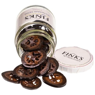FINK'S Schwarze Nüsse in Scheiben sind eine außergewöhnliche Delikatesse, die deinen Gerichten das gewisse Etwas verleiht. Diese in Sirup eingelegten Raritäten harmonieren perfekt mit Wildgerichten, Käse und Desserts. Kalt serviert oder leicht erwärmt – sie sind vielseitig einsetzbar und sorgen für unvergessliche Geschmackserlebnisse. Verleihe deiner Küche einen besonderen Akzent!