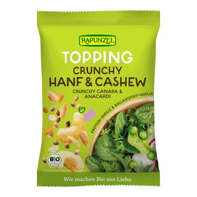 Topping Crunchy Hanf & Cashew von Rapunzel bringt unwiderstehlichen Crunch in deine Gerichte. Mit knusprig gerösteten Hanfsamen aus Österreich und aromatischen Cashewkernen wird jedes Gericht zum Geschmackserlebnis. Ideal zum Verfeinern von Salaten, Bowls oder Joghurt – einfach toppen und knuspern. Vegan und ohne Gentechnik, perfekt für bewusste Genießer.