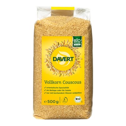 Vollkorn Couscous von Davert ist eine vielseitige Zutat, die deine Gerichte aufwertet und dir dabei hilft, gesunde Mahlzeiten schnell zuzubereiten. Hergestellt aus hochwertigem Hartweizen, enthält dieser Couscous nahezu alle Bestandteile des vollen Korns, was ihn zu einer hervorragenden Quelle für Ballaststoffe und essentielle Nährstoffe macht.