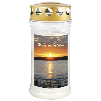 Das Grablicht 'Sonne' von JEKA ist die ideale Wahl, um deinen Angehörigen in der letzten Ruhe eine besondere Ehre zu erweisen. Mit einer Brenndauer von bis zu 4 Tagen sorgt dieses Licht dafür, dass dein Andenken über längere Zeit hinweg hell erstrahlt. Die Brennmasse besteht zu 100 % aus Pflanzenöl, was nicht nur umweltfreundlich ist, sondern auch eine saubere und ruhige Flamme garantiert.
