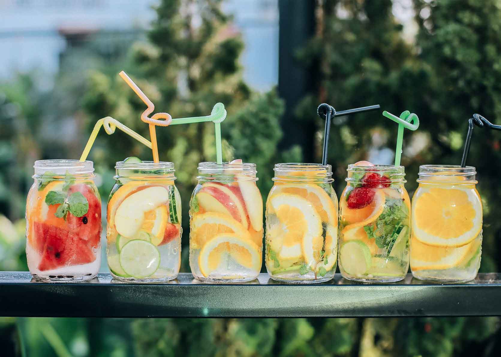 - Infused Water: Wasser, das mit Obst, Gemüse oder Kräutern wie Zitronen, Orangen, Gurken oder Minzblättern angereichert ist, kann Kindern mehr Lust auf Trinken machen.