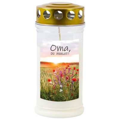 Die mehrfarbige Gestaltung des Grablichts bringt Farbe auf den Friedhof und schafft eine warme, einladende Atmosphäre. Ob zum Jahrestag, zu Feiertagen oder einfach als Zeichen der Erinnerung – das Jeka Grablicht "Oma" passt in jede Jahreszeit und zu jedem Anlass.
