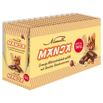 Die Manja Tafel von NIEMETZ vereint feinste Haselnusscreme mit einer köstlichen Schoko-Glasur in perfekter Tafelform. Zartschmelzend auf der Zunge, verwöhnt sie deinen Gaumen mit 8% hochwertigen Haselnüssen und mindestens 28% Kakao in der Milchschokolade. Ohne Gentechnik, ideal für einen süßen Genussmoment!