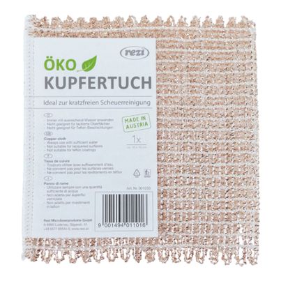 Das große, gewirkte Kupfertuch „Made in Austria“ bietet eine umweltfreundliche und kratzfreie Alternative zur herkömmlichen Scheuerreinigung, ganz ohne den Einsatz von Chemie.