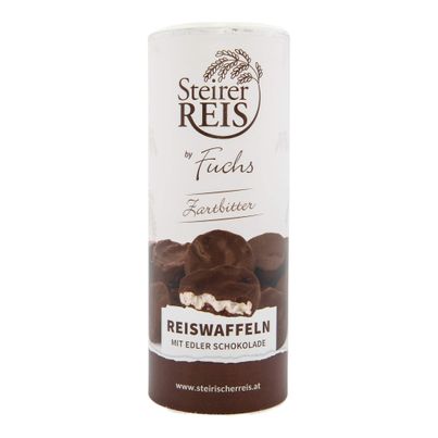 SteirerREIS by Fuchs Reiswaffeln mit Zartbitterschokolade überzogen. Der gesunde Snack für Zwischendurch - österreichische Produktion - höchste Qualität - praktische Verpackung in der Dose